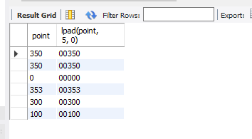 select porint, lpad(point, 5, 0) from member;