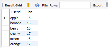 select userid, char_length(email) as len from member;