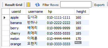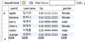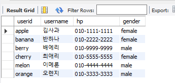 select userid, username, hp, gender from member; -- 뷰로 생성