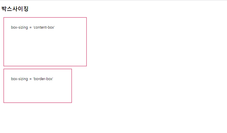 - box-sizing 속성값을 border-box로 설정하면 width와 height값에 padding과 border를 포함