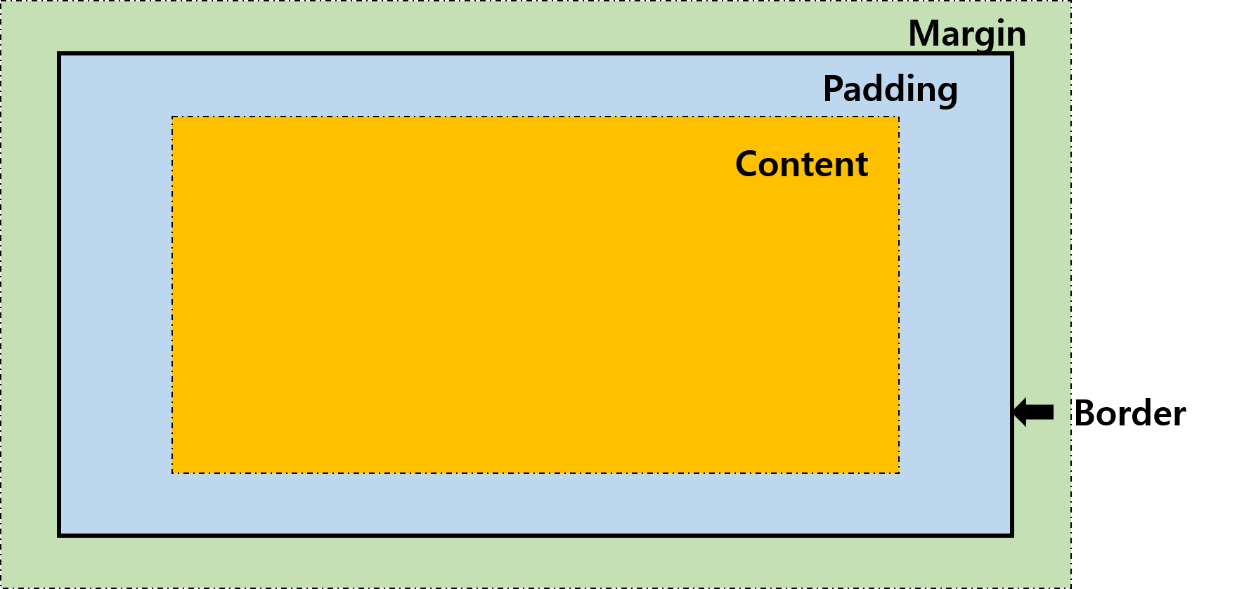 - 박스 모델은 HTML 요소를 내용, 패딩, 테두리, 마진으로 구분함
